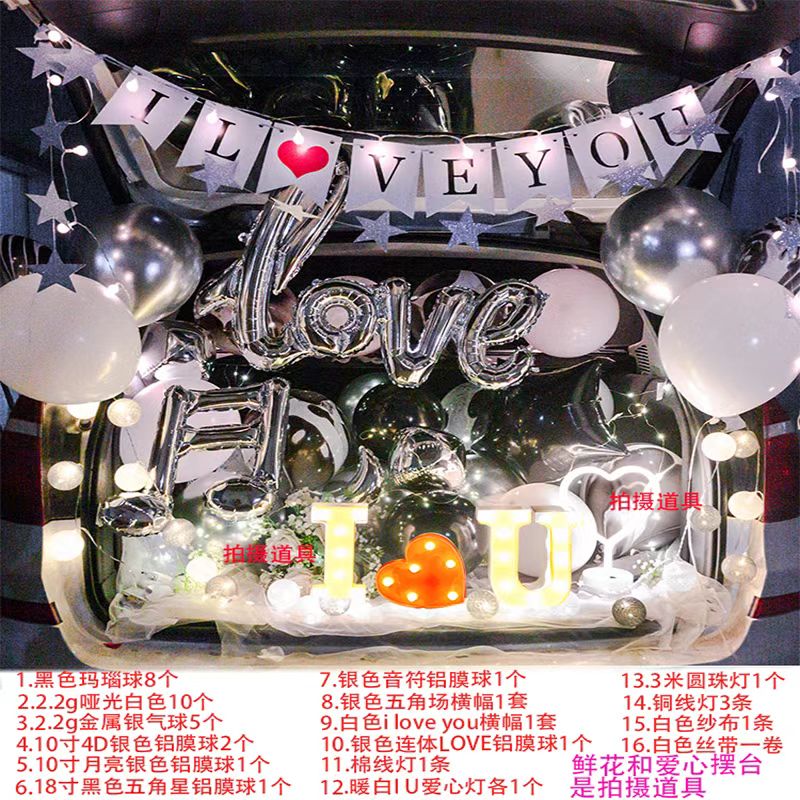 Комплект включает украшения для багажника машины, воздушные шары, стильный сундук и множество других элементов, которые поднимут любое торжество на новый уровень. Идеально подходит ко дню рождения или для особых романтических мгновений.